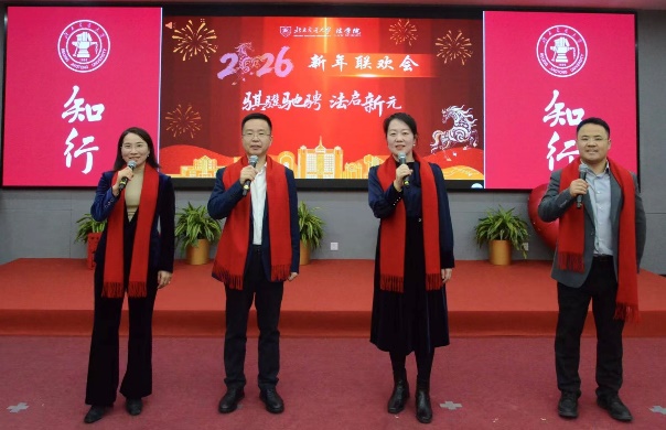 1月16日下午,欧博allbet百家乐试玩平台 “骐骥驰骋 法启新元”新年联欢会在综合体育馆三层多媒体教室举行。校党委常委、副校长艾渤,欧博百家乐 领导班子与全院教职工欢聚一堂,共迎新春、共话美好。联欢会分为“骐骥启新程”“同心共奋进”“法韵绘新元”三个篇章,由民商经济法学系副教授王俣璇、国际法学系副教授吕宁宁、团委书记李兴友共同主持。